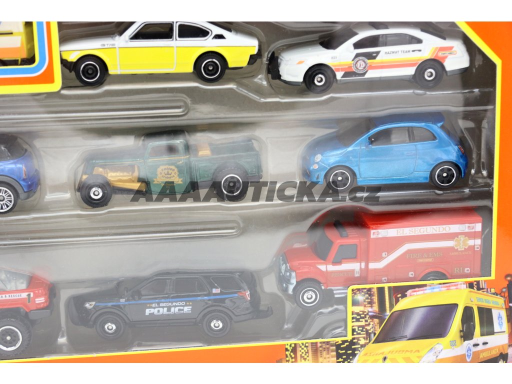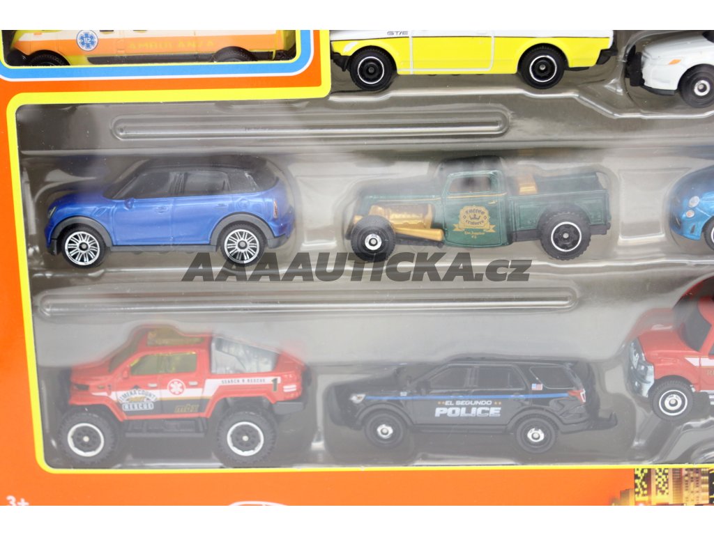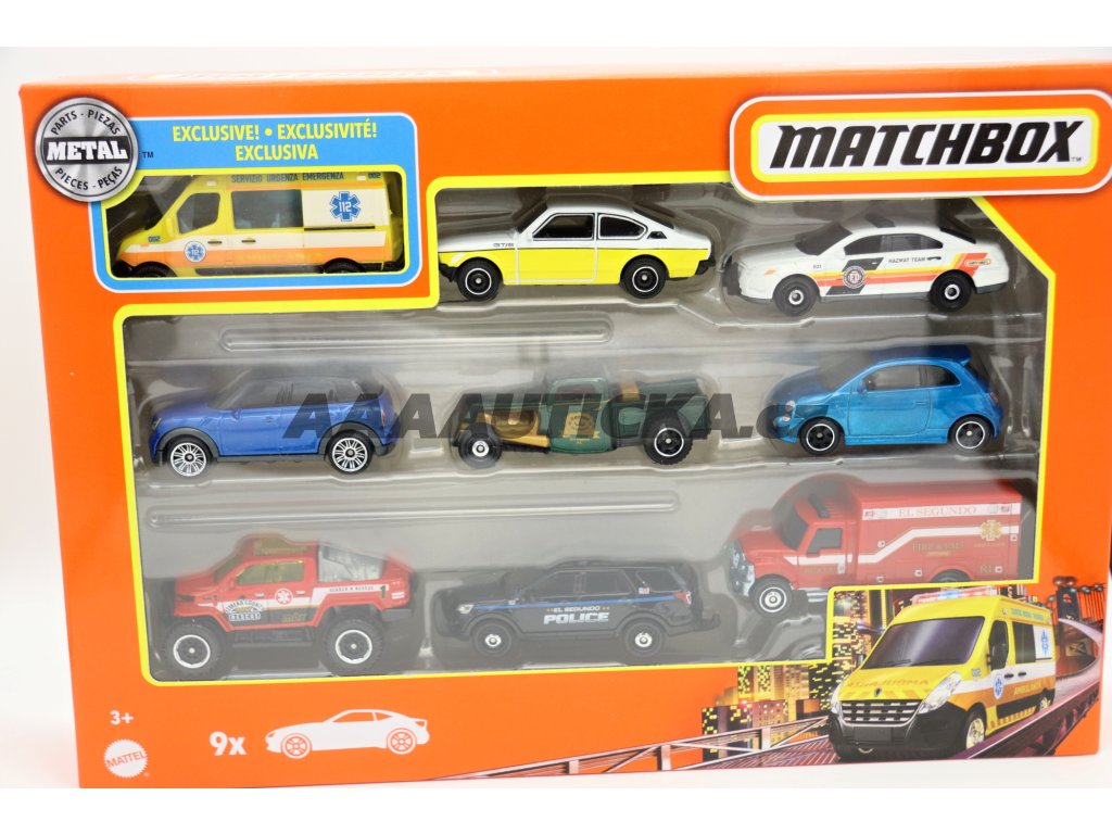 9 modelů Matchbox v jedné krabici.